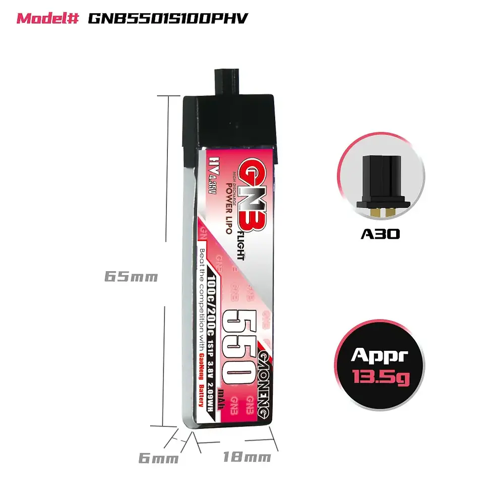 GNB LiHV 1S 3.8V 550mAh 100C A30 Plastic Head